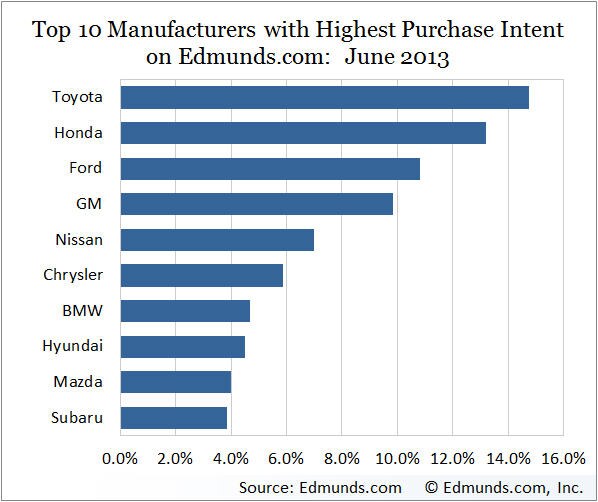 Edmunds.com believes that "purchase intent" is a metric for measuring a model's share of consumer demand. While actual model sales are affected by several factors other than consumer demand (including model supply, configuration availability, incentive changes, dealer marketing strategies and fleet sales), purchase intent is a good predictor of near-term consumer sales.