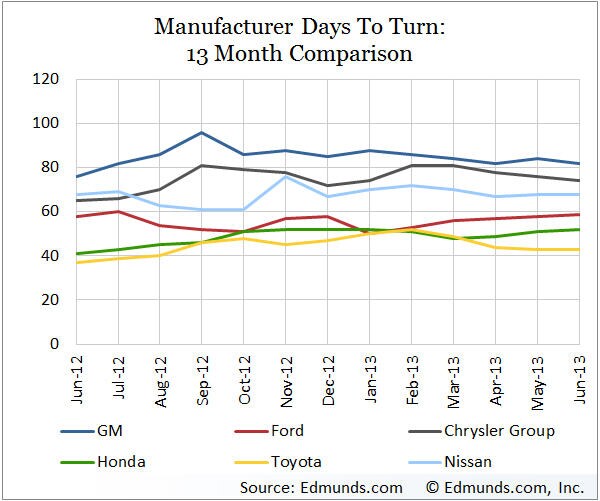 Days to Turn is the average number of days vehicles were in dealer inventory before being sold during the months indicated.