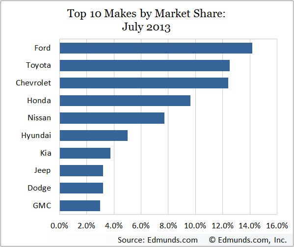 Market Share by Make is the percentage of industry sales for the months indicated for each make displayed.