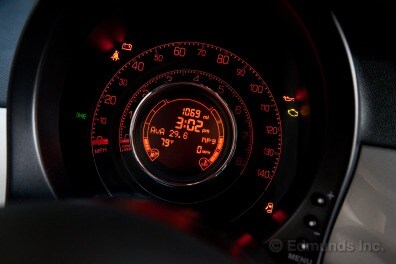 The Fiat's digital trip computer is nested inside an analog tachometer, which is nested inside an analog speedometer. It's an overwhelming clump of numbers, but unlike the Mini's real-estate-intensive pie-plate speedometer, it's all mounted in front of the driver's face. So take your pick.