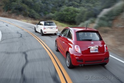 But if you're living in the real world where monthly payments matter, the Fiat could make sense. For one, it's more than $4,000 cheaper when comparably equipped. For another, it has slightly higher fuel economy ratings (30 city/38 highway mpg versus 29/37), and it returned slightly better mileage during our testing (29 vs. 27). Finally, driven in the right conditions (the city), it can be a fun car, particularly if you're using it as a support vehicle for something faster and less practical.