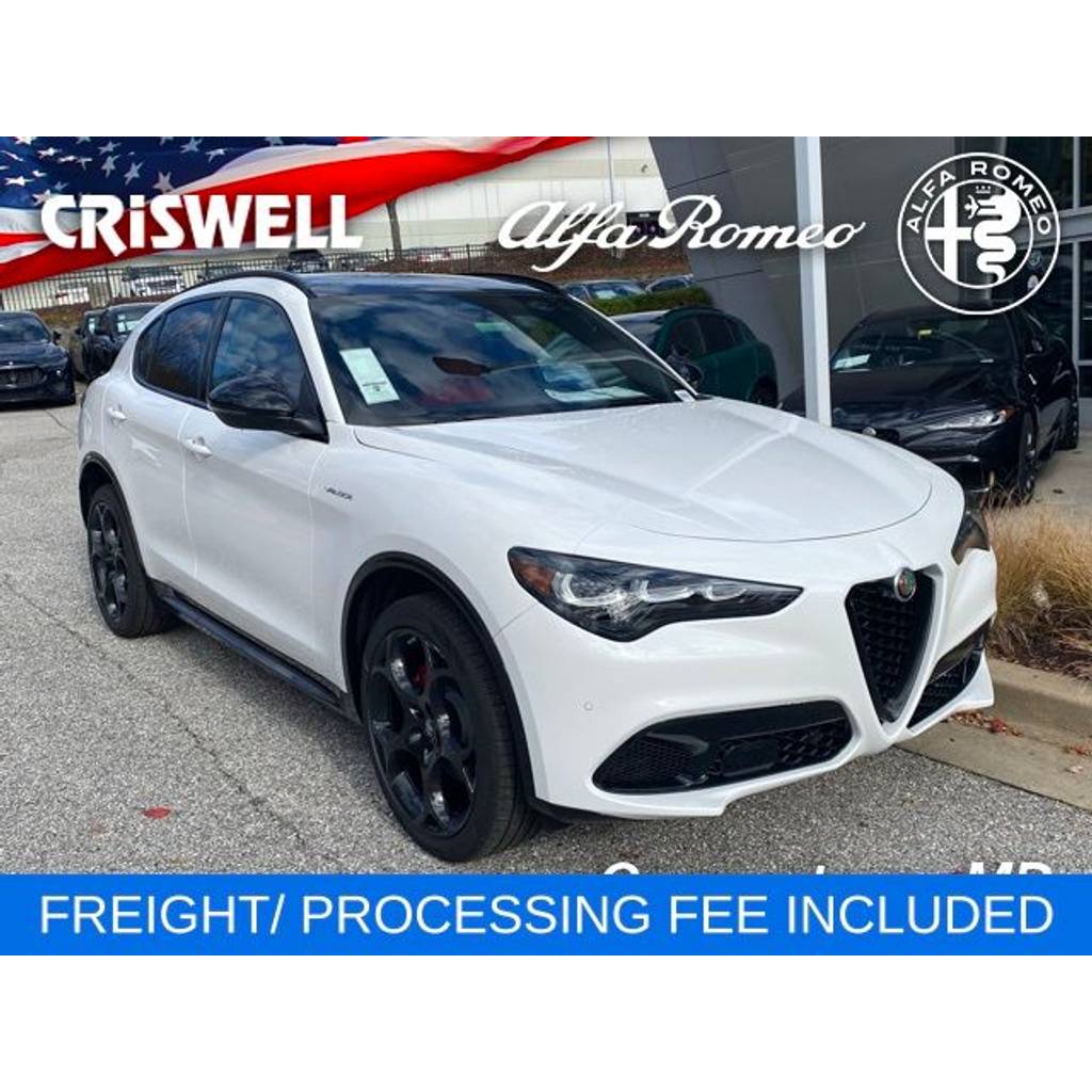 Alfa White 2025 Alfa Romeo Stelvio Veloce AWD 8-Speed Automatic I4 AWD, Black/Dark Red w/Leather Sport Seats w/Red Accents, ABS brakes, Active Cruise ...