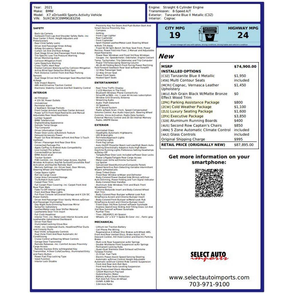 Tanzanite Blue II Metallic 2021 BMW X7 xDrive40i AWD 8-Speed Automatic 3.0L I6 DOHC 24VConnected Package Pro, Executive Package (DISC) (Gesture Cont...