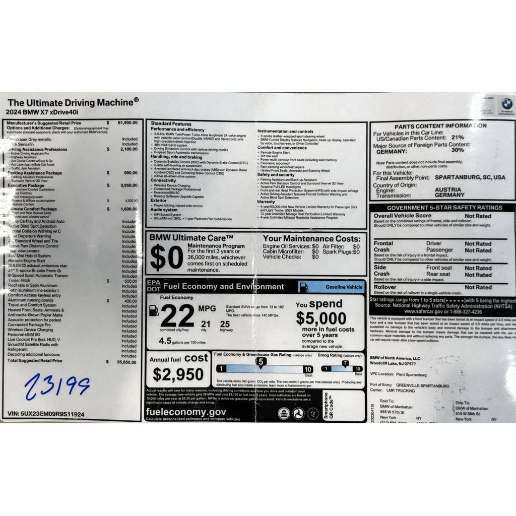 Priced below KBB Fair Purchase Price! 2020 BMW X7 xDrive40i This X7 xDrive40i is nicely equipped with Cold Weather Package (5-Zone Automatic Climate C...
