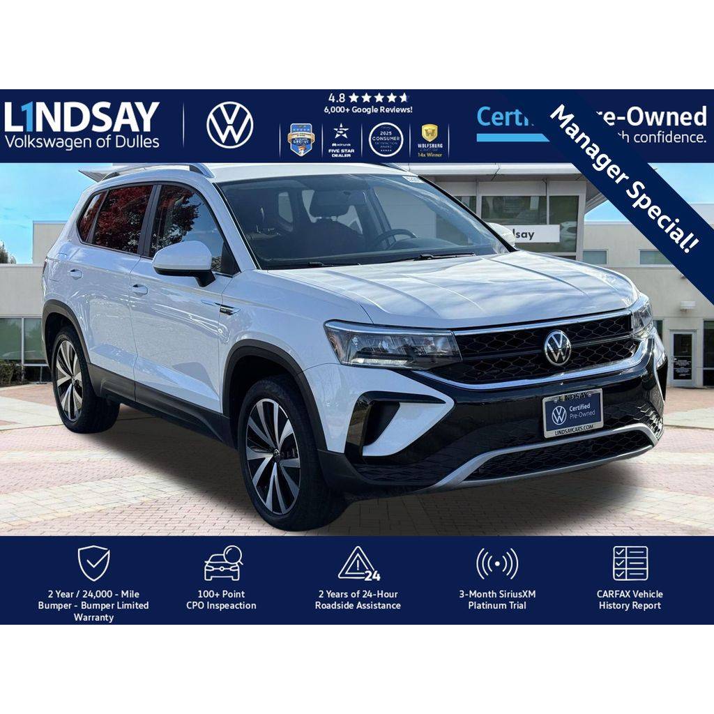 Clean CARFAX. CARFAX One-Owner.Certified. Pure White 2024 Volkswagen Taos 1.5T SE FWD 4D Sport Utility 8-Speed Automatic with Tiptronic 1.5L I4 Turboc...